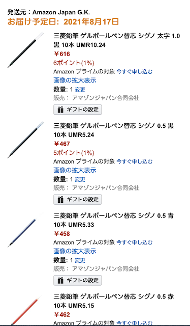 前回紹介した Signoのボールペンを気に入りました。 追加分を購入する事にしました。